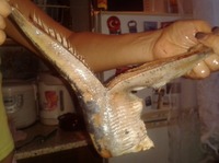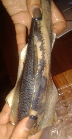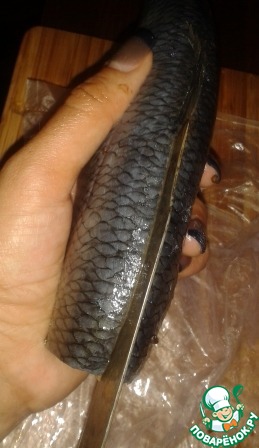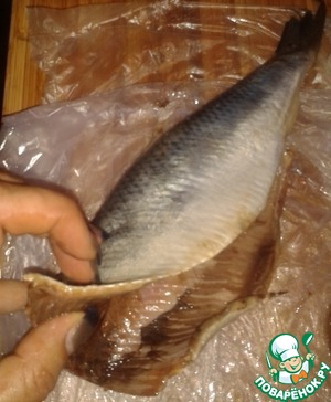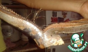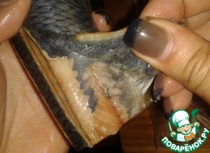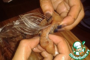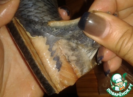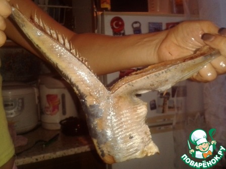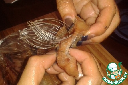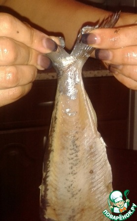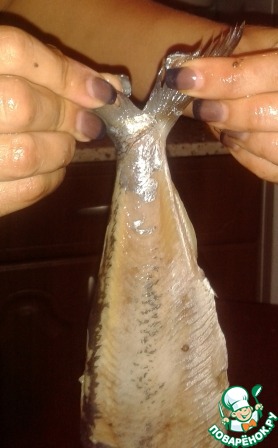 Берём рыбину за хвост. Каждую половину хвостика в отдельную ))) руку.