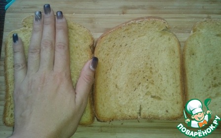 Три ломтища хлеба освобождаем от корочек. Корочки скармливаем с вареньем детям.