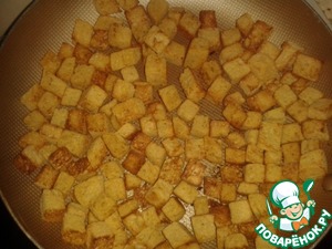 Свои сухари лучше. Они не сильносолёные, как из пачек, без глютомата и пр. чего-то, сухие снаружи и чуть мягкие внутри. Просто прелесть. Если сами хлеб не печёте, сделайте сухарики из покупного хлеба.