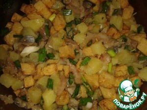 - Сухари (По объёму должны быть примерно равные доли селёдки, картошки, лука и сухарей. Плюс минус сколько есть.) — 2 горст.