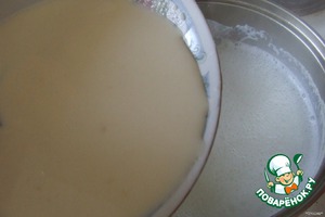 Эту смесь постепенно нужно влить что бы не было комочков в кастрюлю с кипящим молоком, непрерывно помешивая.