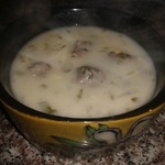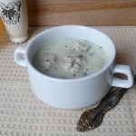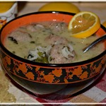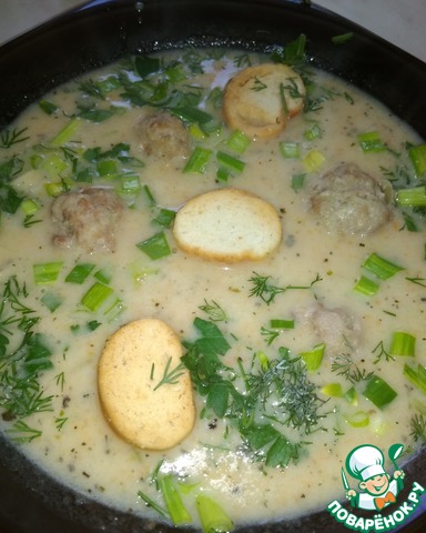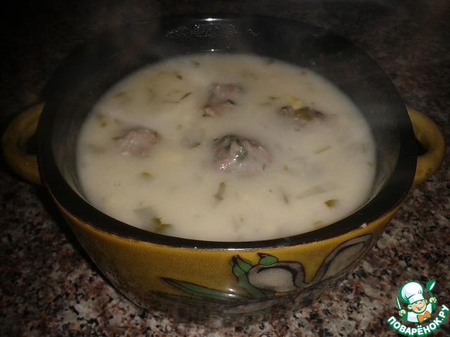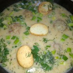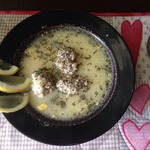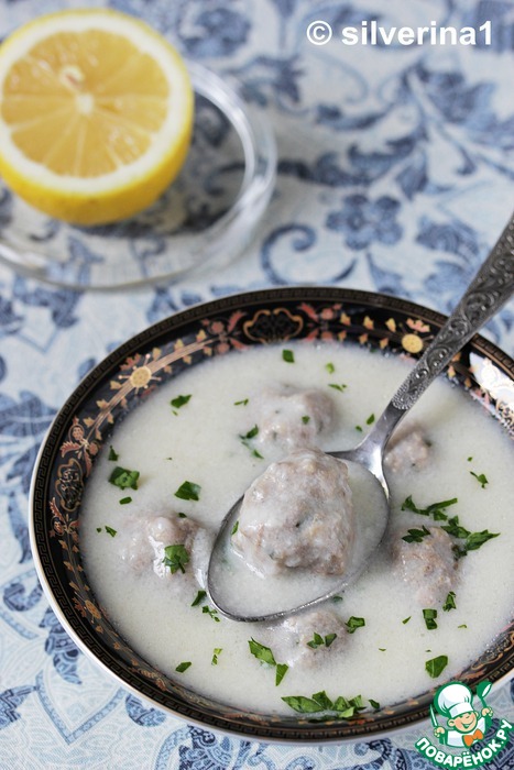 Мясные шарики нужно обвалять в муке и муку разводим с желтками и йогуртом. Примерно пополам - в первом случае гр. 25- 30 муки, и во -втором столько же. Это где-то 2-3 ст. л общим счетом. Слишком густой суп может получиться, если яйца не крупные, риса чуть больше, йогурт густой. Ну и мука бывает разная. Вкусно в итоге?
