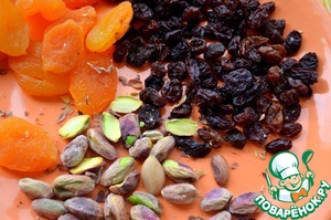 Моем и обсушиваем курагу и изюм, чистим фисташки