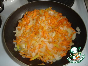 Пока картофель варится, обжариваем овощи (лук и морковь).