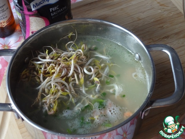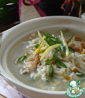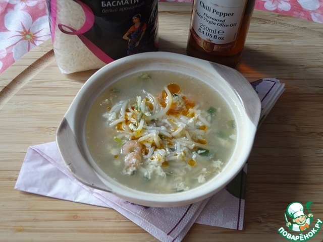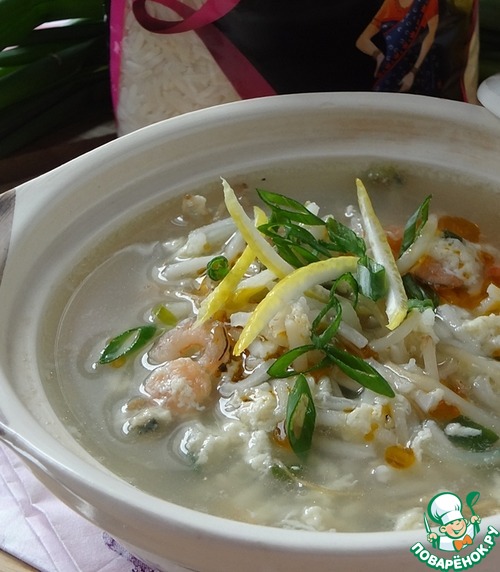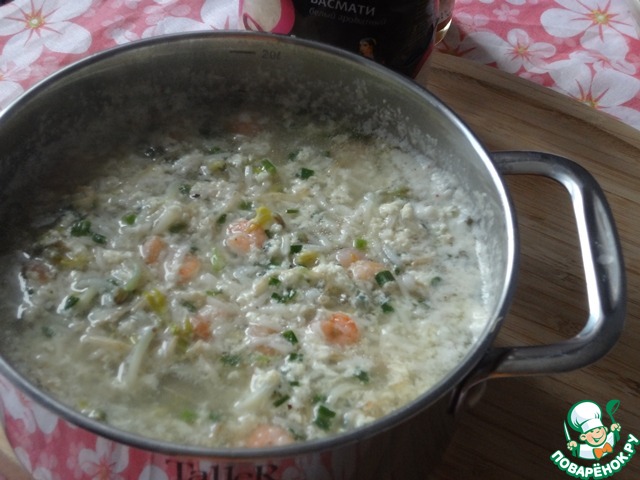 Рецепт «Суп с креветками, зеленым луком и яйцом»: