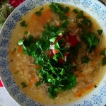 Суп готов. Нарезанную смесь зелени (кинза, укроп и зеленый лук) добавляем в готовый суп. |