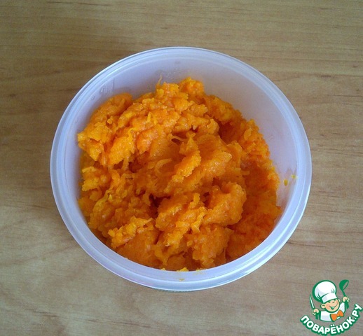 Обычно в рецептах, морковь сырой используют. Мне подумалось, что если её запечь предварительно, то получится нежнее. Взяла морковь, вымыла и запекла в микроволновке до мягкости. Остудила. Потом очистила и натёрла на мелкой тёрке.