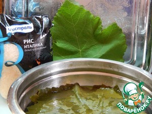Виноградные листья заливаем кипятком и выдерживаем 20 минут.