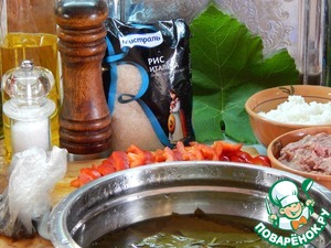 Долма - голубцы в виноградных листьях - одно из самых популярных блюд на Востоке. Название происходит от тюркского слова "dolmak" - наполнять и первоначально оно относилось ко всем блюдам с мясной, рисовой или овощной начинкой. И все же в наши дни настоящей долмой считают ту, в состав которой входят виноградные листья. В выходные побывала у сестрички в гостях, запаслась виноградными листьями (зять выращивает отличный виноград) и с удовольствием делюсь рецептом.