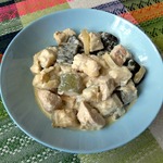 Вот эти продукты я использовала. Нарезала куриное филе и кабачок - кубиками. Лук- полукольцами.