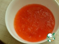 4. Затем алычу протереть через сито, добавить пропущенный через пресс чеснок, сахар, мелко нарезанный перец чили. Должно получиться примерно 150г соуса. |