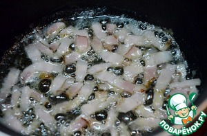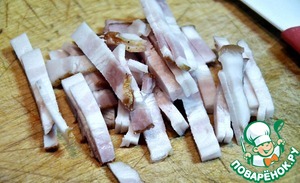 Нарезаем бекон соломкой.