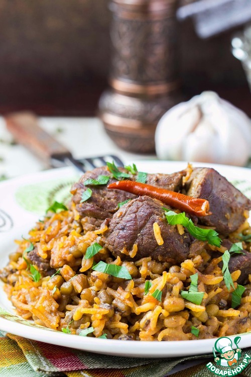 Машкичири - это традиционное блюдо узбекской кухни. На первый взгляд, оно очень похоже на плов, тут и рис, и зирвак с мясом, овощами, бульоном. Но в отличии от рассыпчатого плова машкичири имеет более кремовую текстуру, это практически каша. Такая консистенция достигается от части за счет использование маша. Маш - это такие небольшие зеленые бобовые, с очень интересным вкусом. Именно они, немного разварившись, делают блюдо более вязким. Получается невероятно вкусно, очень ароматно и по-восточному богато!