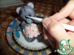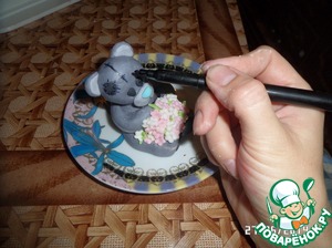 Когда мишка подсох, раскрашиваем его пищевым фломастером.