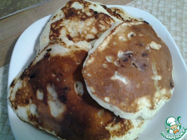 3.) Сода. Этот нюанс взят из классического американского рецепта панкейков. Сама размышляла в свое время, зачем и разрыхлитель, и сода. Но не стала убирать соду, оставила, как предлагал рецепт, и не жалею о своем решении)))