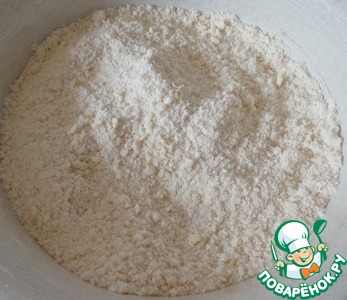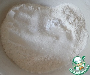Для приготовления теста необходимо смешать муку, сахар, соду и соль.