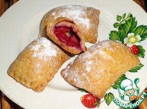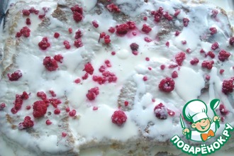 Кладем малину. Края защипать. Края по желанию можно украсить с помощью вилочки.