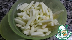 Яблоки очистить и порезать брусочками 1см.x1см. (можно чуть меньше), сбрызнуть лимонным соком.