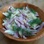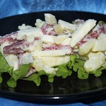 Предлагаю вам рецепт салата. Я пробовала его на ужине в двух разных гостиницах, и в обоих он назывался "итальянский". А так как я люблю понравившееся мне блюдо разлаживать на состовляющие, а потом приготовить дома, то я поступила так-же и с этим салатом. Всё очень просто.