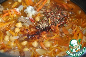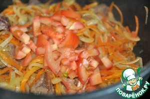 5. Зирвак приготовляют, как для плова, но в него добавляют еще помидоры.