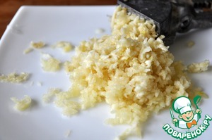 Готовим чесночный соус. Чеснок чистим и выдавливаем через чеснокодавилку.