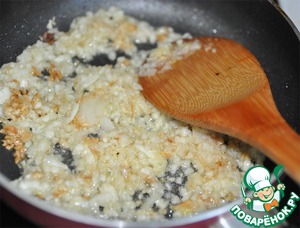 На сковороде разогреваем растительное масло, добавляем чеснок и обжаривем 1-2 минуты.