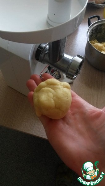 Затем достаем мясорубку и закладываем в нее по чуть-чуть тесто.