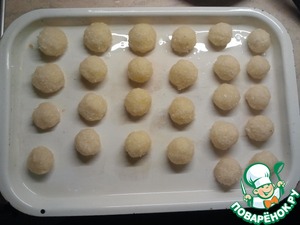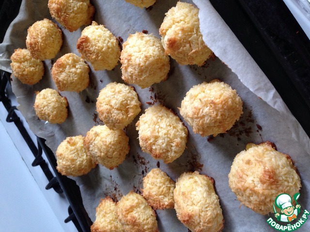 Каждый кокосовый шарик выложите на смазанный маслом противень и отправьте печенье в духовку, примерно на 20-30 минут.
