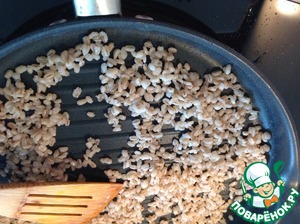 Перловку слегка обжарить в небольшом количестве оливкового масла.
