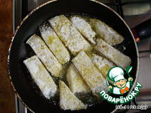 Обвалять в муке со всех сторон кусочки филе. Обжарить на растительном масле.