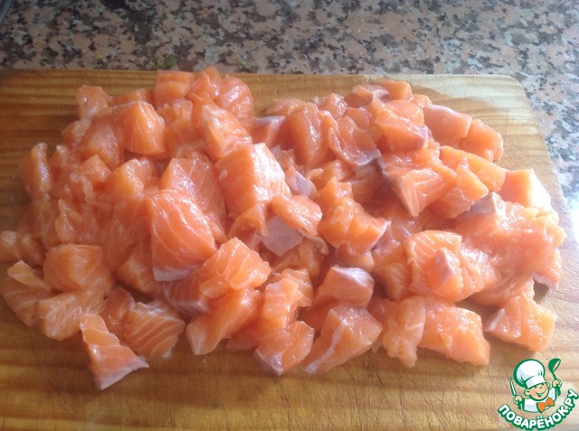 Вынуть тесто из духовки и выложить первым слоем рыбу