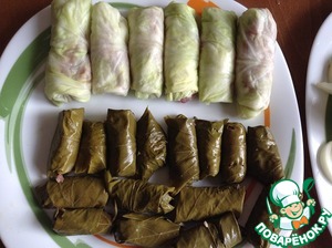 берем виноградные листья и таже фаршируем их - делаем долму. -