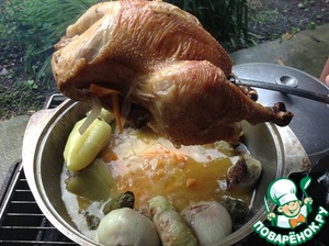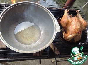 Поэтому я курочку довела в духовке почти до готовности и оставила ее в тепле рядом с казаном.