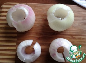 С остывшего лука снимаем верхние кольца - самые крупные.