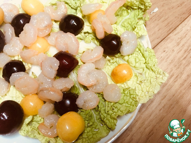 Летний салат с маринованной черешней и креветками. Это очень вкусно! ;) "Для любителей экспериментов".