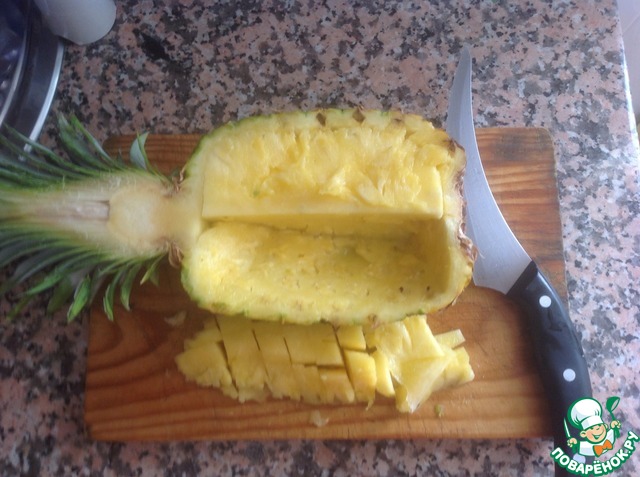 1/2 нарезанного ананаса порубить блендером до консистенции пюре