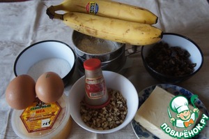 Ингредиенты для «Медово-банановый кекс с орехами и финиками»: