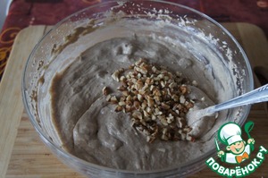 В последнюю очередь добавить большую часть нарезанных на небольшие кусочки орехов. Немного оставить для подачи.