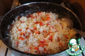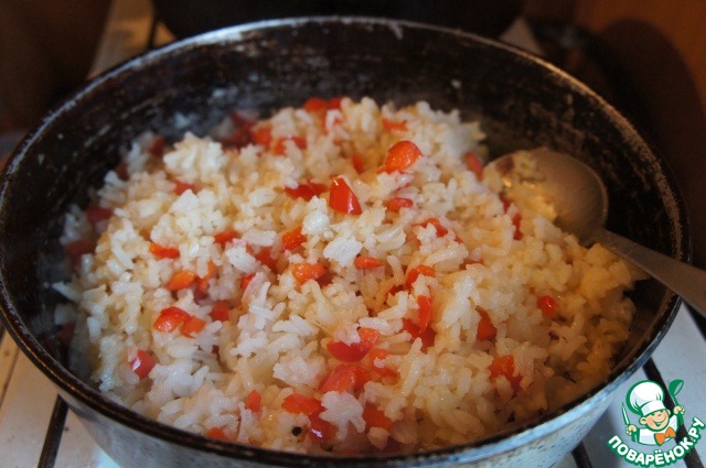 Сварить рассыпчатый рис и соединить его с обжаренным перцем.
