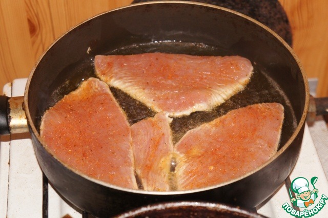 Филе вынуть из маринада, обсушить бумажной салфеткой, слегка присолить
