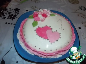 Скажу сразу, что с тортиками я не дружу) Выпекаю все, пироги, булочки, пирожки, а вот с тортами как-то не получалось, но вот решила попробовать сделать тортик на годовщину свадьбы)) Говорят вкусненько получилось))) Не судите строго) Мой первый тортик украшенный мастикой) Попробуйте, может быть и вам прийдеться по вкусу)