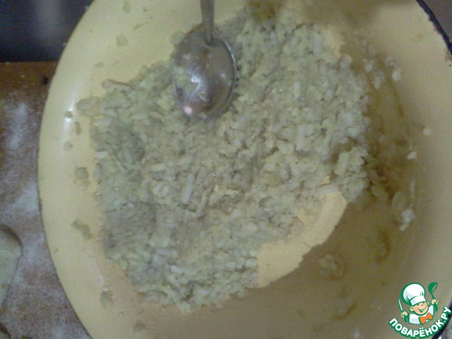 1. Отварить картофель в мундире, если остался со вчера (тоже можно). Почистить, натереть на крупной терке. Добавить в него соль, перец, яйца,1\2 часть манной крупы, измельченный укроп.