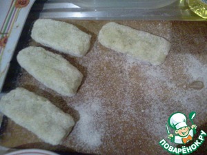 2. Разогреть сковороду с маслом. сформировать из нашего"теста" палочки и обмакнуть с каждой стороны в манную крупу.