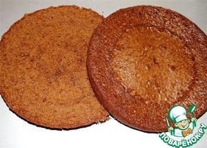 Для бисквита взбейте яйца до пышной пены, порциями всыпьте сахар. Взбейте до пышной белой массы. Затем всыпьте какао с разрыхлителем, добавьте мягкое сливочное масло и просеянную муку. Тесто выложите в смазанную чашу мультискороварки. Выпекайте бисквит на режиме Выпечка с открытым клапаном - 40 минут. (мощность моей м/с 1000 Вт). Думаю можно испечь корж в духовке тоже.