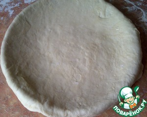 • Вынуть тесто из холодильника. Раскатать на обсыпанной мукой поверхности. Можно и руками распределять. Кому как удобнее.