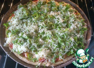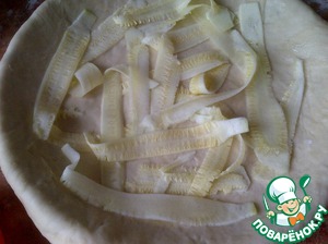 • Выложить не очень удачные кабачковые ленты на тесто.