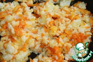 Морковь и лук очистить. Морковь натереть на крупной терке. Лук мелко нарезать. Спассеровать измельченные овощи на растительном масле.