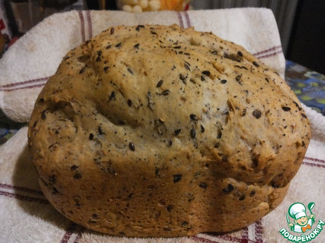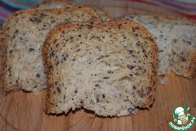 Легкий, воздушный и очень полезный хлеб с добавлением цельнозерновой муки, а обжаренные семена льна, кунжута и мака придают ему насыщенный, слегка ореховый вкус. Заходите и я вас угощу. За рецепт огромное спасибо Donna Beth.