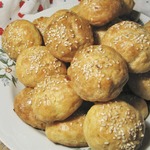 Делаем шарики (примерно по 30-35г) и выкладываем на застеленный ковриком или пекарской бумагой лист. Смазываем взбитым яйцом и обильно посыпаем кунжутом.