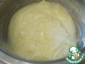 Пока все остывает, делаем крем. В кастрюле ставим на огонь бульон и доводим до кипения. Пока он закипает, в другой емкости смешать яйца, крахмал, сок лимона, сметану, сахар, соль. Добавить в смесь 2-3 ложки горячего бульона, перемешать и тонкой струйкой влить яичную смесь в кипящий бульон, постоянно помешивая. Довести до загустения и снять. Этот крем отдаленно мне напомнил по вкусу сырный.